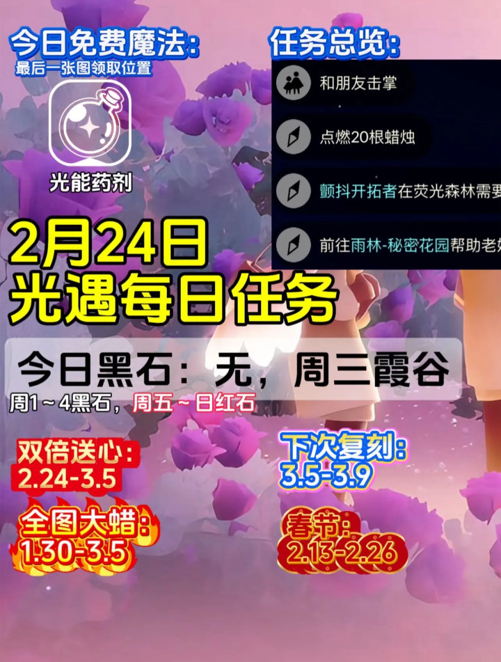 九游会app 光遇当天任务2月24号,光遇季蜡位置