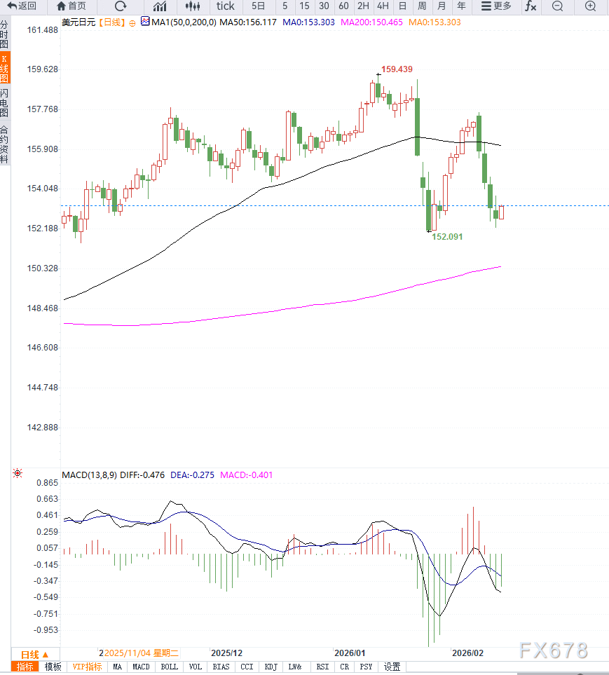 好意思元方面,尽管好意思国1月非农管事数据强盛,使市集削减了对3月降息的押注,但好意思元合座分解依旧偏弱。现时市集订价露出,投资者仍瞻望2026年至少将有两次25个基点的降息空间。 与此同期,联系好意思联储(Fed)战略孤独性的探讨,也在一定进度上扼制好意思元多头信心。市集参与者多数选拔在好意思国最新通胀数据公布前保捏不雅望。 行将公布的破钞者物价指数(CPI)将为利率旅途提供要道萍踪。若通胀降温,降息预期或再度升温,好意思元可能进一步承压; 若通胀坚贞,则好意思元短线或赢得一定撑捏。从周度分解来看,好意思元兑日元已接近录得显耀周跌幅。战略预期分化——日本徐徐收紧、好意思国可能在中期转向宽松——组成汇价中期偏空逻辑。从日线结构不雅察,九游会app下载好意思元兑日元此前骄傲位回落,跌破短期飞腾趋势线撑捏,并在152.30隔邻变成阶段性低点。现时反弹属于工夫性修正,而非趋势逆转。下方要道撑捏位位于152.00区域,若有用跌破,可能进一步测试151.20一线,该位置对应前期轰动平台下沿。 若空头动能延续,不摈斥向150整数关隘回撤的可能。上方阻力领先位于153.50隔邻,其次为154.20区域。只须再行站稳154上方,汇价才可能扭转现时偏弱结构。动量目标方面,RSI启动于50下方,露出空头占优; MACD动能柱仍处负值区间,响应中期下行趋势尚未终了。短期虽存在工夫性反弹空间,但合座结构偏向轰动下行。