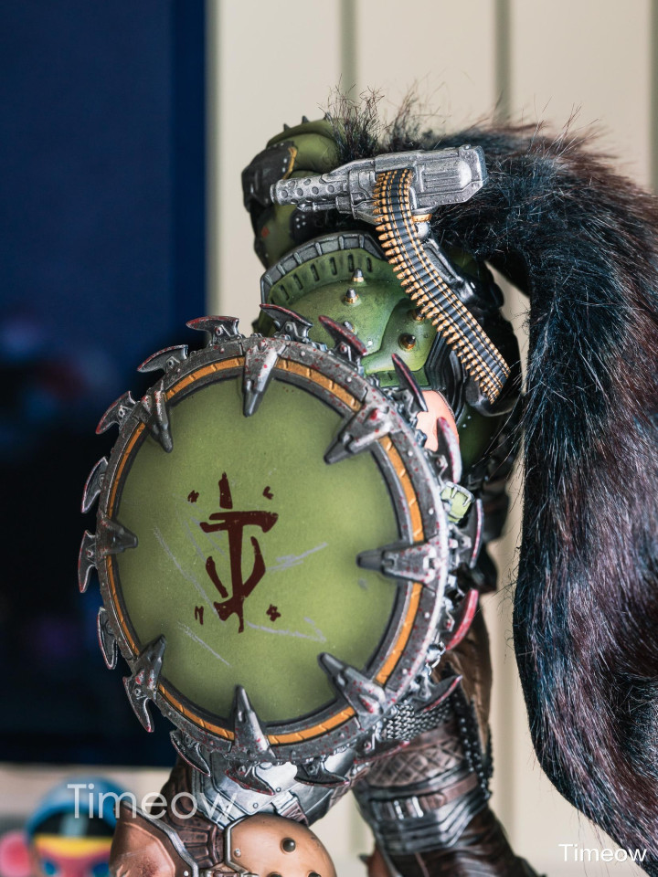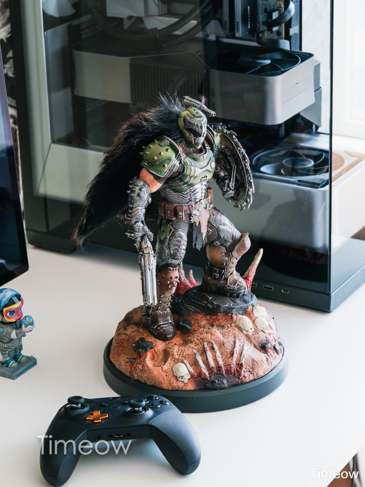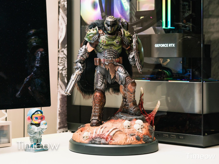 地台踩着恶魔遗骸和骷髅,肩戴式自动炮塔、腰间锁链这些小细节都雕得超风雅,近距离看都挑不出差错。