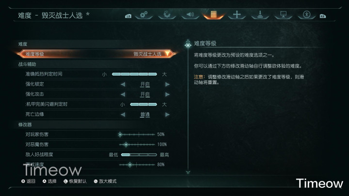 游戏难度开采取项极为丰富,可以开采敌方的枪弹速率、弹反判定技能、伤害倍率,可以流露为内置了舞弊器,充分情绪到了手残党和高玩,让统统东谈主可以按照我方的喜好去大杀特杀,这点我必须好评!