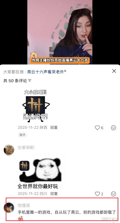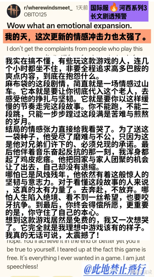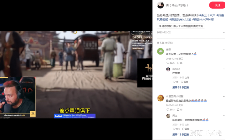 不知说念从什么时期驱动,我们岂论刷抖音、B站,照旧逛国外的Reddit、Twitter,王人能看到吞并种同意:一群金发碧眼的老外,对着《燕云十六声》的缔造和场景奖饰,大要对着游戏里的剧情泪下如雨,也会发表一些圈外东说念主听不懂的“江湖黑话”。
