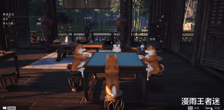 最绝的是那些超真理又有互动性的开脱玩法,玩家不错酿成一条狗,混进狗群里搓麻将,也不错找只大熊,在搏斗间学会两招太极。以致骑马撸猫、投壶棋战……这种“无场合的漫游”,才是江湖最底本的风物——不是打怪升级,而是予求予取。