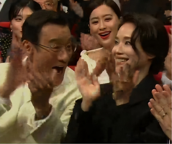 一样不显老的还有64岁的杜德伟。他一晚得益两奖——最好男破碎和最好着装奖。领奖时,他第一时刻亲吻了身旁的太太。 杜德伟的太太比他小24岁,但两东说念主同框时险些看不出年事差。