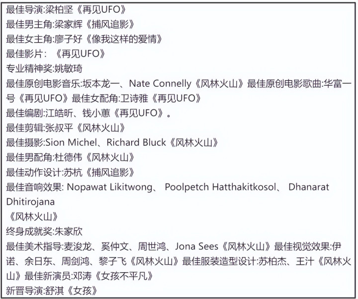 临了附上这次金像奖的获奖名单!