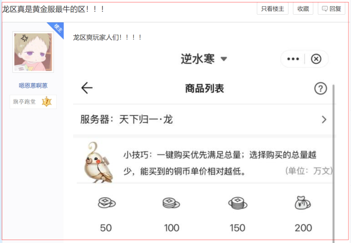 从这位网友晒出的收益截图来看,他所说的还真不夸张,险些每笔进账都在千元以上,而据他说当今思要作念好“网游搬砖”,最主要的是要选好游戏,像他近两年就一直在专注栽植《逆水寒》黄金服!