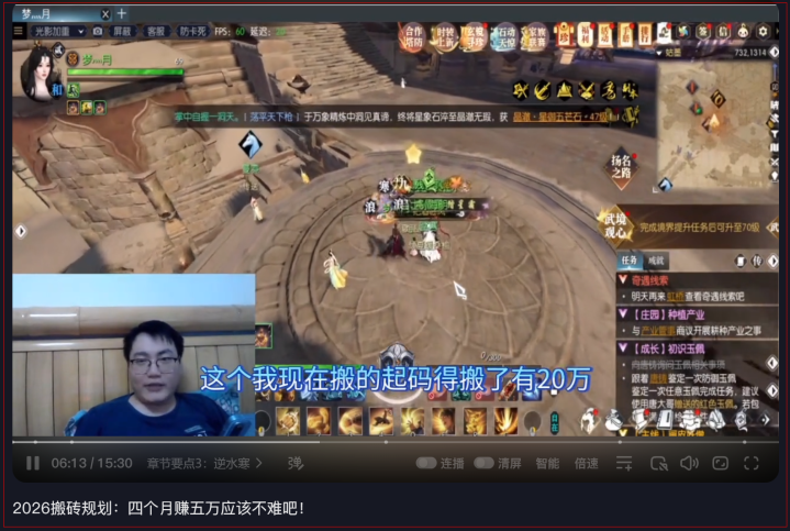 事实上翻翻抖音、B站等热点酬酢平台,访佛上述玩家这么,晒出我方在黄金服高额收益的“搬砖党”还有很多,以致不乏有东说念主靠卖黄金服搬砖攻略赚的盆满钵满,哪怕并非作事“搬砖党”,边玩边搬的世俗玩家,也能鲁莽赚取到上千的收入。