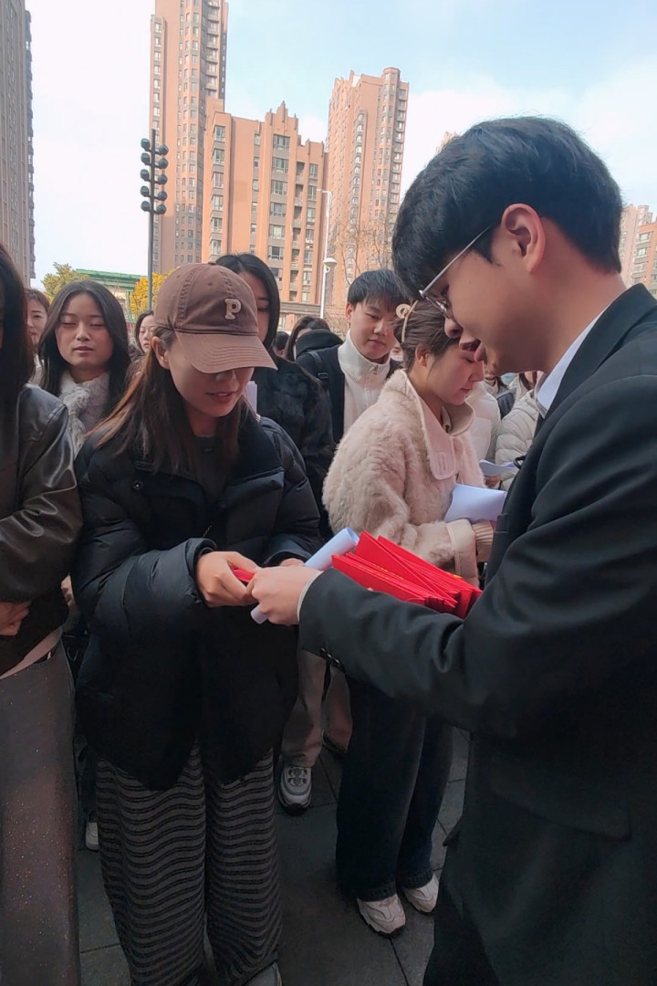 金店认真东谈主黄志勇向每位口试者披发金币红包 金币重0.1克,装在红彤彤的红包里。口试者每东谈主王人领到一枚,随后喜气洋洋地运行口试。